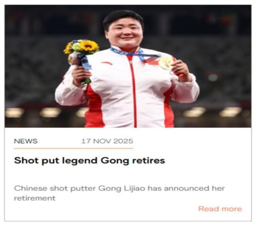 巩立姣宣布退役后,世界田联官网发文,称其为“当代最杰出的铅球运动员之一”。除了一枚奥运金牌,她还在14年间的连续八届世锦赛中都登上领奖台,其中两次夺金;她还取得过10余场钻石联赛分站赛的胜利,手握两枚亚锦赛金牌、三枚亚运会金牌……“近20年来,她始终是世界铅球界的领军人物。”