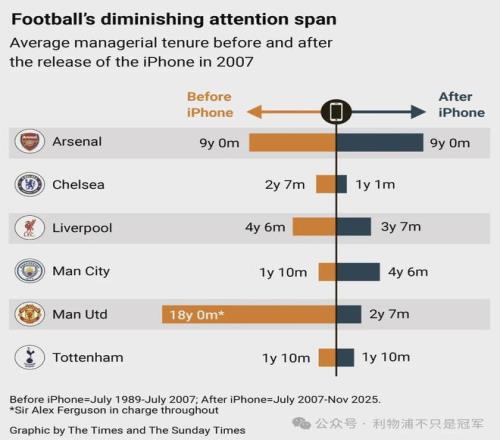 我们生活在一个注意力缺失的时代,置身于注意力经济当中。自iPhone手机2007年问世至今的18年,英国已经历任7任首相,而此前的7任任期长达43年。这种普遍存在的跺脚式的浮躁和缺乏耐心,让足球教练的职位比以往更加岌岌可危。