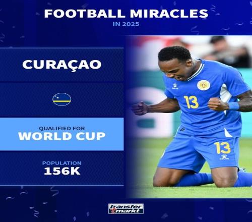 12月26日,德国转会市场网发布盘点内容,聚焦2025年度足坛诞生的八大“奇迹”事件。这些事件均以较低概率上演,其中既包括仅15.6万人口的库拉索历史性打入世界杯的励志时刻,也有格林斯比爆冷击败曼联等令人意外的冷门。
