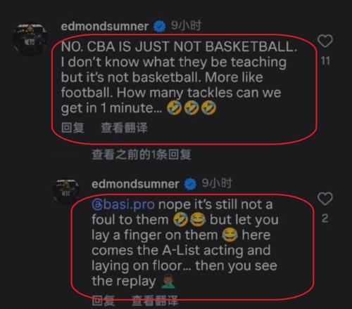 有时候,萨姆纳也是火气上头,做出一些回应,但是,只要他做出一些回应,往往就会被裁判吹罚犯规。遭到一次又一次不公平的待遇,萨姆纳终于是忍无可忍,在个人社交媒体上,发文对CBA公司、CBA裁判提出质疑,炮轰CBA联赛不是在打篮球,而是在打橄榄球。