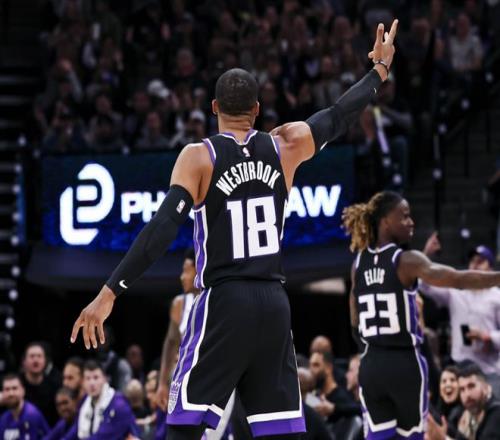 中段双方陷入拉锯战,威少的三分球打破僵局,节末又是威少底角轰进三分,拉文也续上三分球。半场国王56-42领先尼克斯。进入第三节,尼克斯依旧找不到三分手感,威少连续喂饼雷诺+拉文+阿丘瓦,威少穿针引线把尼克斯打穿了!布里奇斯终于命中三分,联合阿努诺比追分,威少成功造三分犯规,此后阿丘瓦和拉文火力全开,国王最多领先25分!哈特和米罗在后半段开始上分,威少继续造杀伤+喂饼拉文外线轰炸,节末阿丘瓦和德罗赞也下三分雨,三节打完,国王96-76领先尼克斯。