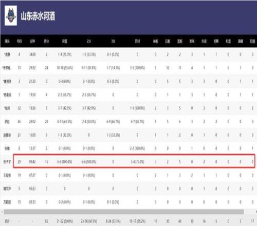 北京时间1月15日,WCBA常规赛,山东女篮85-76击败武汉盛帆女篮,这场比赛中国女篮超级新星张子宇登场9分42秒,6中6,拿到15分5篮板,命中率100%,这场比赛张子宇打出了他登陆WCBA最高效的一场比赛。