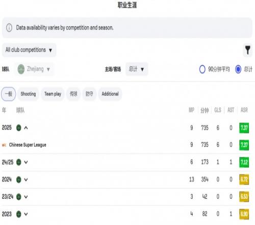 紧接着对梅州,他完成了一个进球帮助浙江拿到1分;