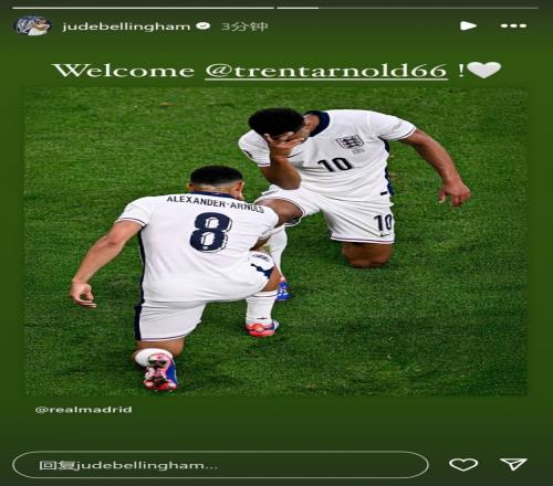 皇马官方宣布签下利物浦边卫阿诺德,合同期限为6年。贝林厄姆在社交媒体上晒出与阿诺德在英格兰队的合照,配文:“欢迎阿诺德!”