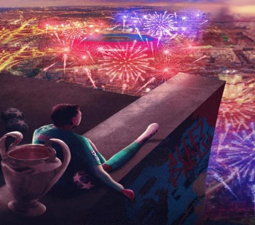 多纳鲁马社媒晒出夺冠海报,内容为他背靠着奖杯,在楼顶欣赏庆祝的烟花,并配上了红蓝心形表情符号。