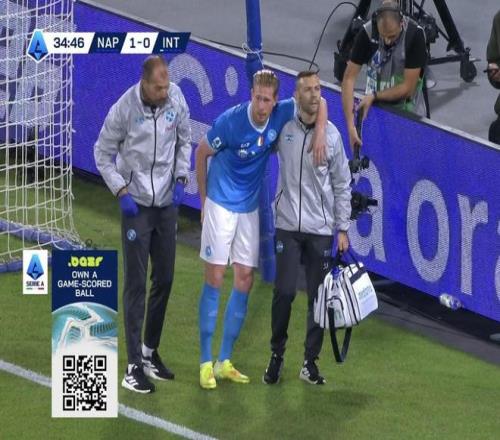 意甲第8轮主场迎战国际米兰的比赛中,那不勒斯中场德布劳内在第33分钟主罚点球破门,但随即因为受伤被替换下场。
