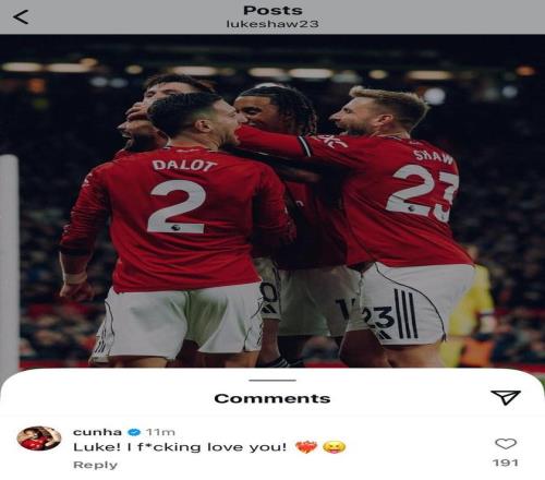 本场比赛曼联拿下三分,这是阿莫林执教以来首次取得英超三连胜,另外,今夏的新援库尼亚终于斩获了自己的红魔生涯处子球,他在卢克-肖的社媒评论区留言:“卢克!我是真xxx爱你!❤️”