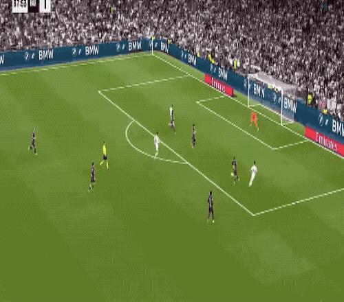 第42分钟,本场状态爆棚的维尼修斯下底传中,米利唐头球摆渡,贝林厄姆包抄破门,皇马再次领先。