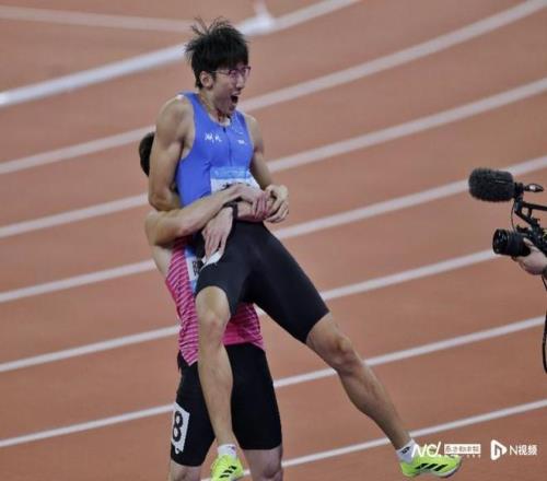 陈冠锋抱起李泽洋庆祝。
