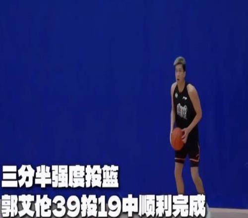 在三分半自投自抢投篮和折返跑测试的二选中,郭艾伦选择了三分半投篮。尽管投篮不是他的强项,但郭艾伦依旧用39投19中的数据,顺利完成了。