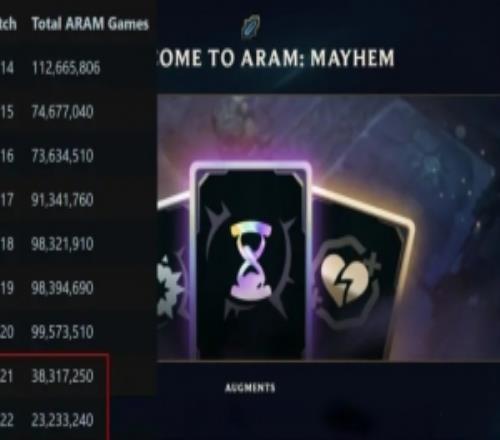 体育资讯11月25日报道宣称 海克斯大乱斗模式上线后,普通大乱斗对局数暴跌超66%,具体内容如下:根据Reddit用户(r/ARAM)发布的统计数据显示,自全新模式「海克斯大乱斗」上线以来,全球普通大乱斗对局数量出现历史性暴跌。