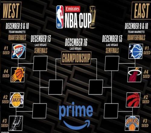 在今天的比赛结束之后,NBA杯小组赛便已经全部完结,晋级八强的球队和淘汰赛对阵已全部出炉。