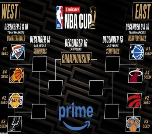 淘汰赛的时间也确定了,东部对决是在北京时间12月10日,西部对决是在北京时间12月11日,届时胜出的2支球队会会是分区决赛。