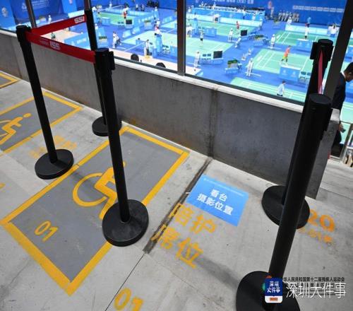 11月25日,全国各地运动员陆续抵达深圳。为保障运动员“来得安心、住得舒心、比赛放心”,福田赛区在接待设施方面,将“无障碍”理念落实到每一个细节中。住宿方面,福田赛区共改造55间轮椅友好房、30间听障友好房,卸除洗手间门、安装门帘保障隐私,还配备了低位洗手盆、低位报警按钮、淋浴扶手、冲凉座椅和拐杖架等设施,兼顾便利性与舒适度。