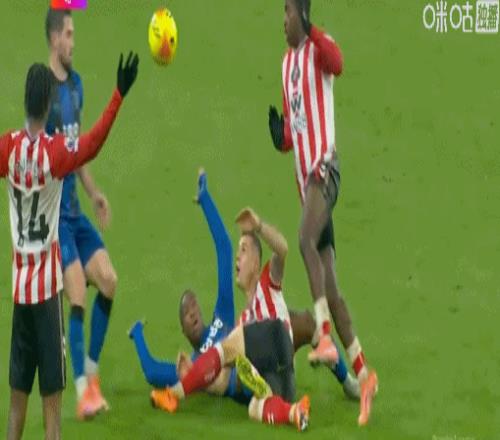 第90+6分钟,刘易斯-库克肘击犯规,裁判直接出示红牌