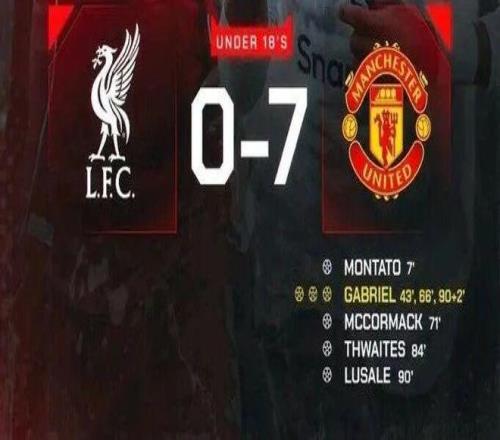 曼联18岁以下青年队周六大获全胜,在青训级别的「双红会」客场7-0大胜利物浦。上个月才满15岁的英格兰天才少年加布里埃尔(JJ Gabriel)完成帽子戏法,其中包括两粒个人表演般的进球。加布里埃尔本周参加了鲁本·阿莫林的一线队训练,但他本赛季肯定无法参加英超。