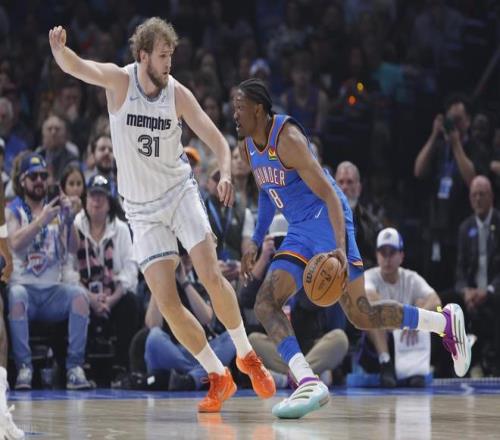次节比赛,雷霆展现出极强的攻防统治力,不仅连续两节单节得分突破30分,第二节更是轰下35+的高分,同时成功限制灰熊,使其连续两节得分不足30分。节初雷霆以40-39保持领先,随后迅速打出一波7-0的攻势拉开分差。灰熊随即加强内线冲击,将分差缩小至5分。但雷霆并未给对手太多机会,亚历山大与杰伦联手引领一波12-0的攻势,将比分扩大至64-47,领先优势达到17分。末段灰熊打出7-3的追分浪潮稍稍缩小差距,本节结束雷霆单节净胜10分,上半场以67-54扩大领先优势。