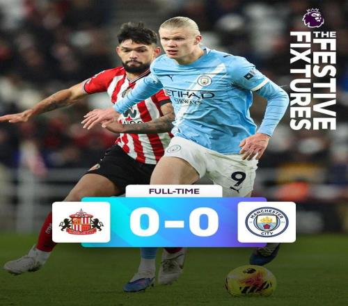 英超第19轮,曼城客场0-0战平桑德兰,各项赛事8连胜遭终结。