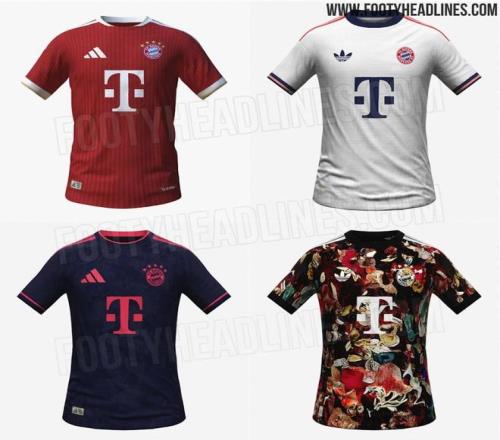 阿迪达斯将在 2026-27 赛季为拜仁推出四款不同的球衣,令人瞩目。除了经典的红、白、金三色主场球衣、带有三叶草标志(以及红色细节)的白、海军蓝客场球衣,以及现代感十足的炭灰色和红色第三球衣之外,拜仁还将发布一款前所未见的、引人注目的第四球衣,该球衣底色为黑色,并饰有眼花缭乱的多色图案。