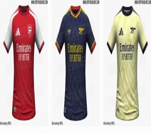 阿森纳下赛季的主场球衣拼接了两种不同的红色,较深的红色将用于衣领、袖口和三条杠。