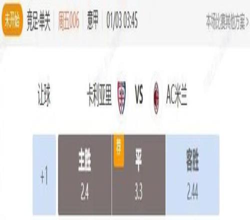 本场给到一球的让步,应该是考虑到AC米兰上轮大胜,且近两次交手均握手言和,AC米兰此战求胜欲望强烈。不过结合近期两队状态和成绩,卡利亚里近期状态也不差,且近3个主场不败,所以感觉让步高了少许。似乎在有意放大AC米兰上场胜利和赢下本场比赛就能登顶榜首这两件事给大家带来的信心。虽然历史交手近6次卡利亚利2平4负,劣势明显。但是卡利亚利近期的表现,展示出了防守端的硬度和进攻火力的提升。所以我认为本场比赛,实力强大的AC米兰不会赢得太轻松,首看AC米兰小胜一球,考虑到上轮客场让一追二逆转取胜都灵和前段时间爆冷击败罗马的那一场,展现出了不俗的韧劲和黑马的气质,这场比赛卡利亚里会不会又给人眼前一亮呢?