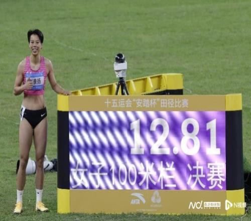 刘景扬在决赛中以12秒81的战绩力压一众国内高手夺得全运会女子100米栏金牌。南都N视频记者 黎湛均摄