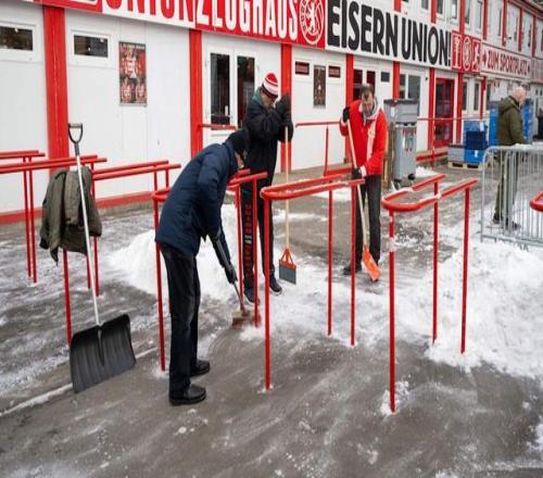 在柏林,柏林联合则向球迷发出“支援请求”,号召前往球场的球迷自带除雪工具。自周四起,球场周边已出动挖掘机清运积雪,多名工作人员与志愿球迷一同上阵清扫,为比赛保驾护航。