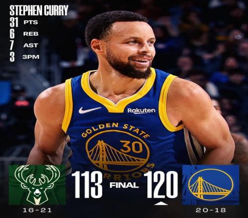 库里31分字母34+10 勇士胜雄鹿