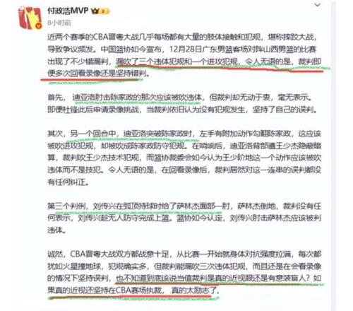 CBA最新裁判报告出炉!广东队做客与山西队的比赛,有3次吹罚都是不利广东队,杜锋也是很气愤!名记付政浩:令人无语……