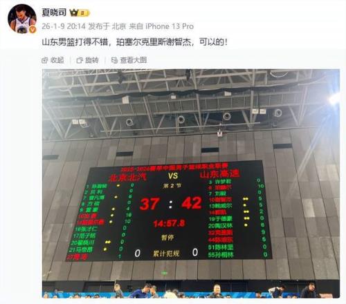 你以为这就完了吗?并没有!到了第四节,山东男篮一度81-71领先10分,夏晓司老师再次发声,“两次打停北京首钢,敢打敢拼!这球输了也没啥说的! ”
