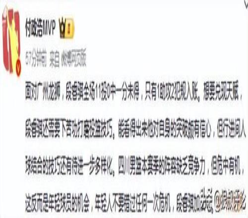 四川男篮本赛季的阵容缺乏竞争力,但危中有机,这反而是年轻球员的机会,年轻人不要错过任何一次危机,段睿骐加油吧。