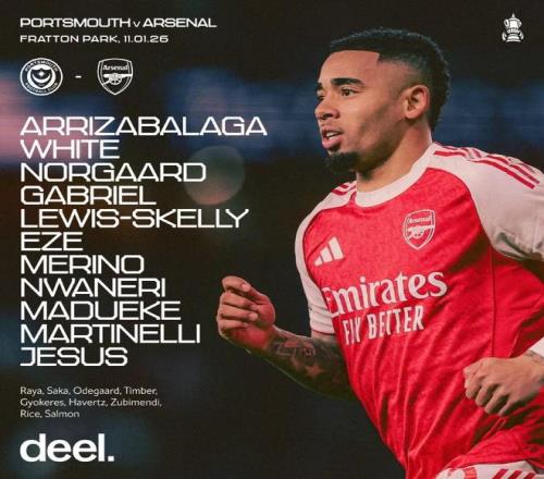 北京时间1月11日22:00,足总杯第3轮继续进行,阿森纳客场挑战朴茨茅斯,赛前双方首发阵容陆续公布: