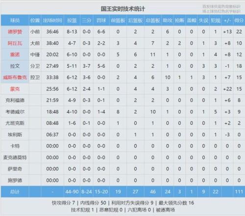 火箭末节崩盘,单节输给国王11分。四节比分如下(火箭在前):23-22、25-29、28-27、22-33。此役过后,火箭22胜14负跌至西部第七,排名被24胜15负的太阳反超。国王结束7连败,9胜30负升至西部倒数第二,鹈鹕9胜32负西部垫底。