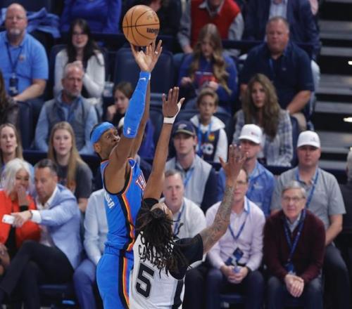 北京时间1月14日,NBA常规赛,卫冕冠军雷霆119-98大胜马刺,本赛季首次击败对手。