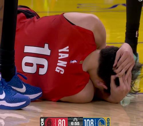 在这场比赛的第四节,杨瀚森在一次争抢地板球的时候,头部不慎撞到理查德的膝盖,一度返回更衣室检查。当时,他痛苦地倒地抱着脑袋。随后工作人员和翻译上前紧急查看情况,他才缓慢起身,后续在人员陪同下返回更衣室,进行简单检查,以防出现脑震荡。现场球迷向他报以热烈的掌声,给杨瀚森加油打气。