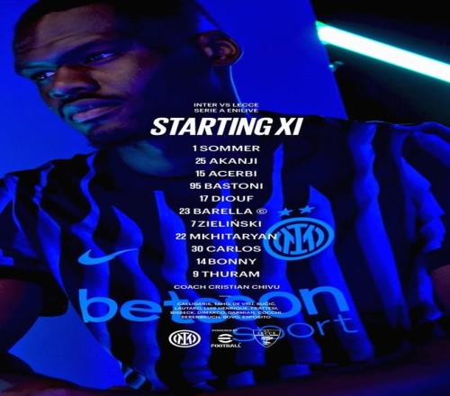 北京时间1月15日03:45,意甲第16轮的一场较量。国际米兰坐镇主场,迎战莱切。赛前,国米的阵容公布如下: