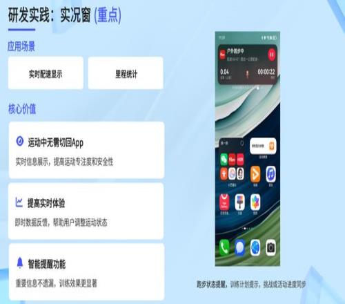 2)实况窗功能(重点实践):作为鸿蒙对运动类应用最具价值的延伸能力,实况窗可实时展示配速、里程、步数等跑步数据,核心价值体现在: