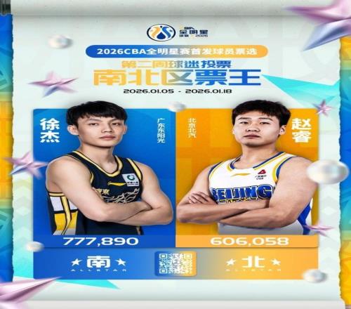 北京时间1月19日,CBA官方公布2026年全明星投票第二周票数情况,徐杰超过77万票成为南区票王与总票王,也是唯一超过70万票的球员。赵睿超过60万票当选北区票王,成为唯二超过60万票的球员。胡明轩反超庞峥麟升至南区后场第二,郭艾伦继续南区后场第四,周琦被沈梓捷反超下滑至北区前场第四,且周琦票数不足曾凡博的一半。