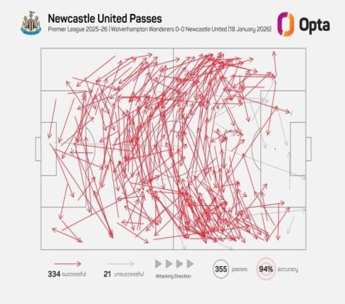上轮客场0-0狼队,纽卡上半场创造一项纪录:成为OPTA有相关统计以来,英超半场比赛传球准确率最高(94%)的0射正球队。纽卡11个英超客场只拿10分,其中10场控球高于对手,6场被零封。客场控球越多,纽卡越难赢,“葬礼中场”技术和创意的不足越暴露无遗。此外,伊萨克离开后,新援中锋沃尔特马德和维萨也有很大改善空间。国骂哥开局凶猛,但近14场英超只进3球,埃迪·豪尚未找到让这位缓慢又不够泼辣的中锋真正融入的办法;维萨长期养伤,伤愈后状态平平。
