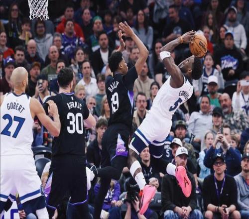 比赛伊始,森林狼反客为主,展现出了强队的底蕴。核心球星安东尼·爱德华兹状态火热,他在进攻端予取予求,全场轰下38分并摘下8个篮板,送出3次助攻和2次抢断,几乎凭借一己之力支撑着森林狼的进攻体系。在他的带领下,森林狼在大部分时间里保持着比分上的领先优势。此外,新援兰德尔贡献19分,展现了不错的适应性;麦克丹尼尔斯和迪文岑佐也分别拿下了18分和15分,森林狼的进攻点分布颇为均匀,似乎胜券在握。内线方面,戈贝尔虽然得分不多,仅有11分,但抢下10个篮板并送出4次关键盖帽,守护着森林狼的禁区。