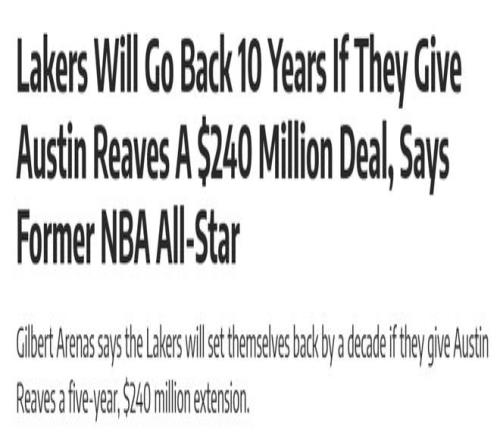 另外,前NBA球星阿里纳斯在播客节目中谈到了即将复出的里夫斯。他认为湖人不该续约里夫斯。