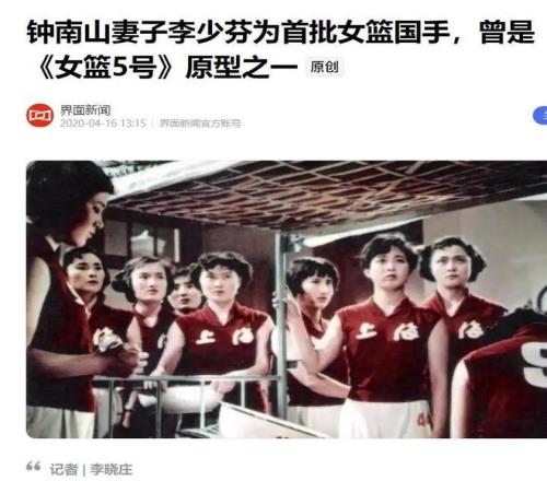 信息来源:钟南山妻子李少芬为首批女篮国手,曾是《女篮5号》原型之一