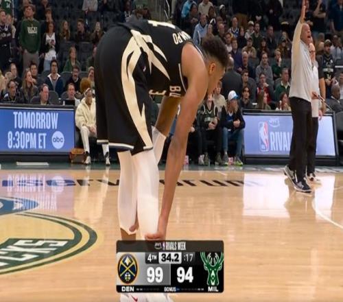 北京时间1月24日,NBA常规赛掘金客场对阵雄鹿,其中掘金是背靠背第二场,掘金多达7位球员缺席,戈登右腿筋拉伤退赛。超级残阵掘金持续压制雄鹿,并在末节开局扩大23分领先优势,字母哥率领雄鹿持续反扑一度追到仅差2分,但字母哥最后时刻脚部不适被换下场伤退,最终掘金102-100赛季双杀险胜雄鹿收获2连胜,雄鹿遭遇2连败,且雄鹿最近8场只有2胜6负战绩。