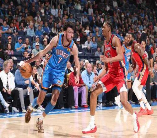 北京时间1月28日,NBA常规赛卫冕冠军雷霆主场对阵鹈鹕,在本场西部首尾大战当中,雷霆在亚历山大与霍姆格伦给力表现引领下,逐步压制鹈鹕扩大17分领先优势,鹈鹕顽强反扑追到差5分。雷霆随后重新扩大领先优势,最终雷霆以104-95赛季三杀鹈鹕结束2连败稳固联盟第一,双方比赛结束后爆发冲突。雷霆取得对鹈鹕交锋13连胜(常规赛+季后赛),鹈鹕结束2连胜。