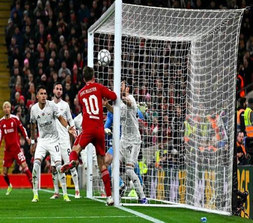 第14分钟,利物浦获得角球,埃基蒂克前点后蹭,范迪克的头球变成助攻,虽然门将做出神奇扑救,但麦卡利斯特的头球已经越过门线,进球有效。