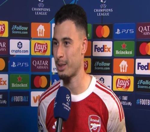 在欧冠客场3-0大胜布鲁日后,此役打入一球的马丁内利赛后接受了CBS体育的采访。昨天我们聊过,你今天进球,成为阿森纳首位连续五场欧冠进球的球员。我对结果和表现非常满意。昨天