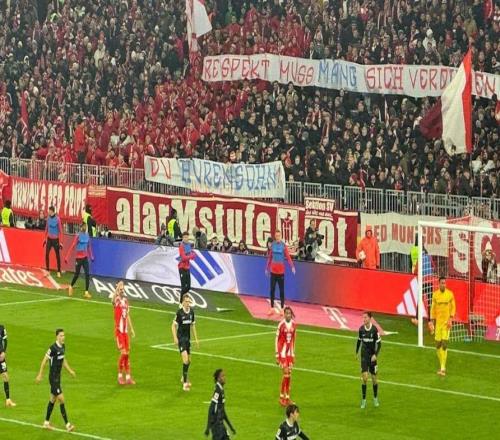 北京时间11月22日,拜仁慕尼黑在主场对阵弗赖堡。在本场比赛中,拜仁慕尼黑球迷拉横幅怒怼慕尼黑1860主席席格尔诺特-曼格。在对阵弗赖堡的德甲比赛下半场,有球迷举起了一条横幅,