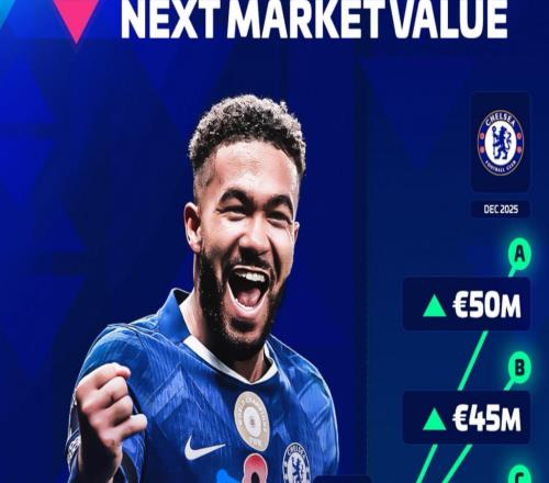 德转将在12月9日对英超球员的身价进行更新,今日德转预热切尔西后卫里斯-詹姆斯身价,最低涨至4000万欧,最高涨至5000万欧。德转给出了三个可能的结果,上涨至4000万欧元、上涨至45