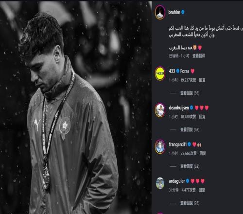 非洲杯决赛罚失关键点球后,卜拉欣-迪亚斯在社交媒体公开道歉,表示承担全部责任。多位皇马队友在其评论区留言送上爱心符号。