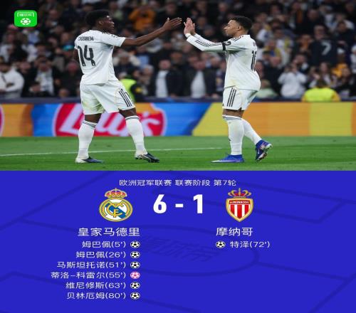 XbotGo丨皇马61摩纳哥,姆巴佩双响,维尼修斯1射2传+造乌龙